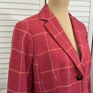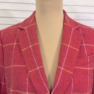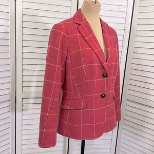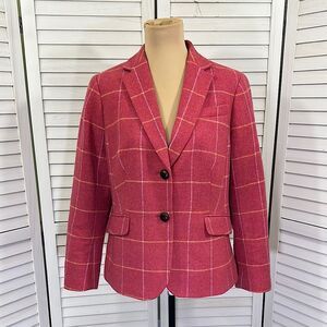 Talbots Pink Wool Blend Plaid Blazer Size 12