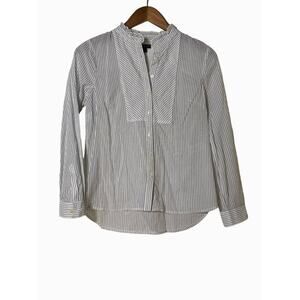 Talbots Pinstipe Button Bibbed Blouse Long Sleeve Semi-Sheer Cotton Small