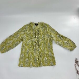 Talbots Pintuck Pleated Vintage 100% Cotton green paisley ruffle Blouse. Has 3/4 sleeve and in excellent barely worn condition. Avocado and light greens.