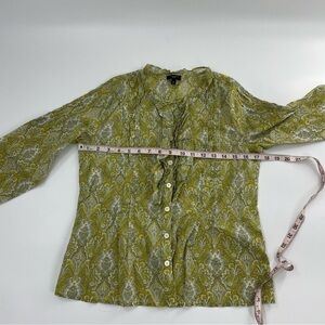 Talbots Pintuck Pleated Vintage 100% Cotton green paisley ruffle Blouse