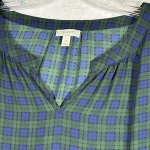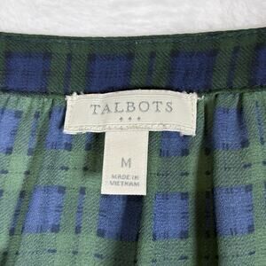 Talbots Plaid Blouse Womens Size Medium Green Blue Long Sleeve Holiday Fall