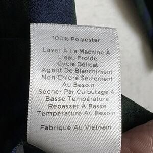 The Talbots Plaid Blouse is a stylish women's top in size medium. This green and blue blouse features a notch V neckline and tie sleeves, making it perfect for the holiday season or fall. Made from lightweight chiffon polyester, this tunic-style blouse has a casual long sleeve design and a sheer fabric that adds a touch of elegance. The classic 90s-inspired piece is suitable for all seasons and is designed by the reputable brand Talbots, ensuring quality and style.