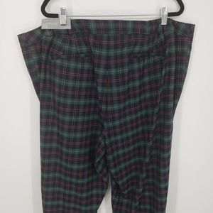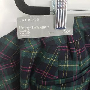 Talbots Plaid Hampshire Ankle Pants 22W Straight Leg Wool Blend High Rise Green
