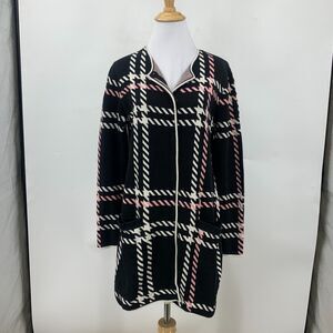 Talbots Plaid Longline Sweater Womens S Small Heavy Knit Snap Button Pockets
