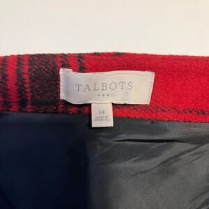 Talbots Plaid Skirt Wool Blend Red Black Size 14 Buffalo Check Holiday Christmas