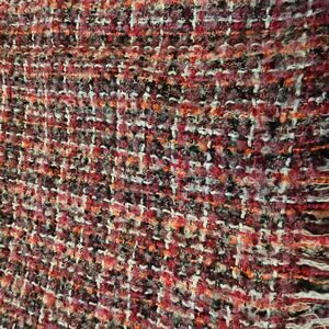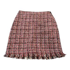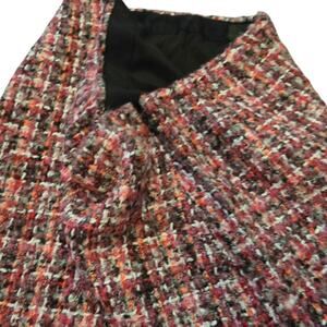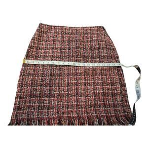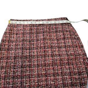 Talbots Plaid Tweed Boulce Fringe Pink Wool Blend Pencil Skirt Size 4