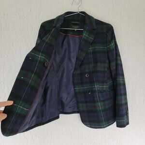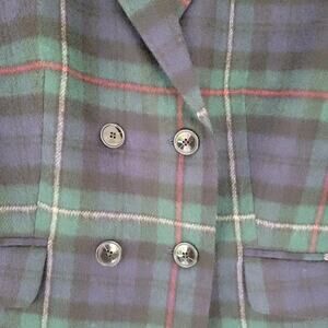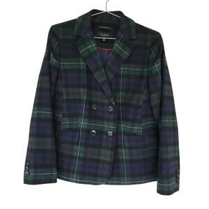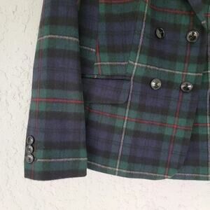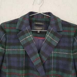 Talbots Plaid Wool Blend Blazer Blue Green Check Women Size 10 Double Breasted
