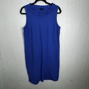 Talbots Pleat-Neck Shift Dress Blue Size Petite Large Sleeveless Knee Length PL