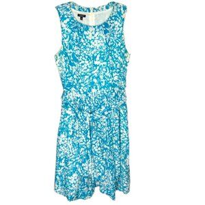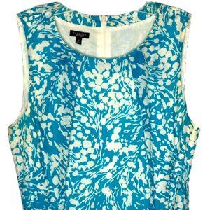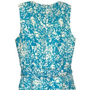 Talbots Pleated Sleeveless Cotton/Silk Blend Dress - Turquoise/White - 12