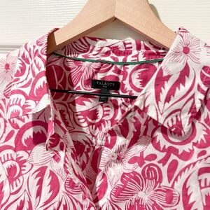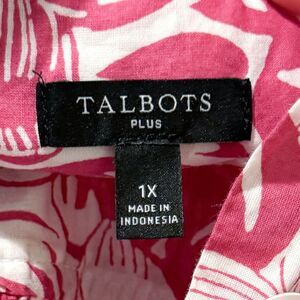 Talbots Plus 1X 100% Cotton Button Up Top Pink Floral Tropical Light Resort