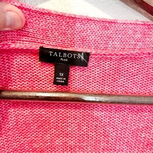 Talbots Plus 1X Pink Button Front Cardigan Sweater Pockets Cozy Preppy Office