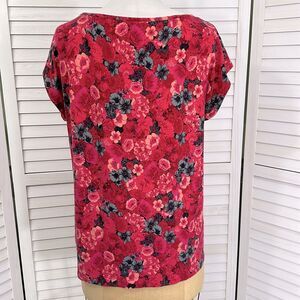 Talbots Plus 1X Top Tee Floral Cap Sleeve Red Pink