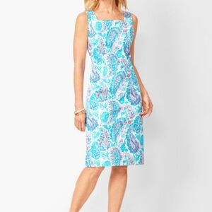 Talbots Plus 22W Cotton Blend Stretchy Turquoise Fresco Paisley Shift Dress