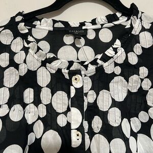 Talbots Plus Black White Long Sleeve Popover Top Size X Dots Lightweight Cotton