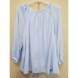 This is a Talbots Plus Blue Polka Dot Shirred Tie-Neck Chiffon Lined Blouse Size 2X