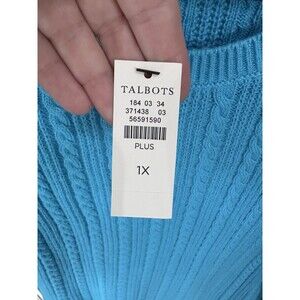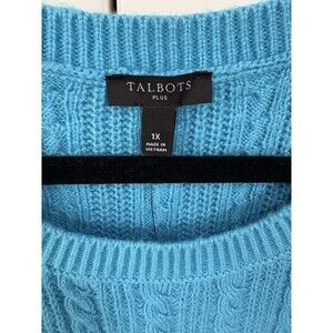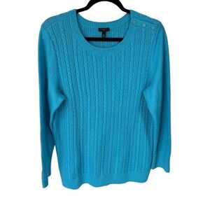 Talbots Plus‎ Cable Knit Blue Sweater Size 1X Button Accent