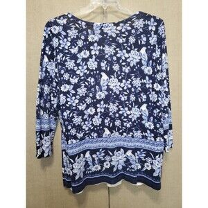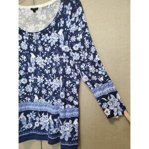 This is a Talbots Plus Cotton Blend Floral Bird Toile Print Scoop Neck Sweater Tunic 1X. Very thin lightweight knit.