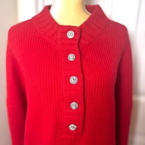 Talbots Plus Jewel Button Henley Wool Blend Pullover in Red Pop