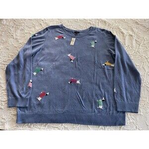 Talbots Plus Multicolor Dachshund Weiner Dogs Blue Sweater LS Ladies 2X NWT $99