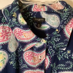 Talbots Plus Paisley Button Down Shirt Size 2X
