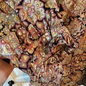 Talbots Plus Paisley Top Blouse Sz 3X Ruffled Neck Sleeve 1/2 Buttoned Down