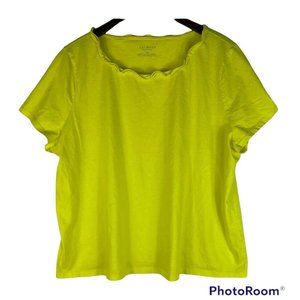 Talbots Plus Petite 3XP Top Shirt Tunic Neon Yellow Ruffle Neckline Short Slv