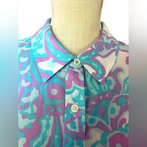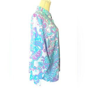 Talbots Fabulous Classic Cotton Bold Paisley, Colorful, Vibrant and Bright Floral Button Down Shirt, Chic Lightweight Shacket, Button Front + Cuff Closure, Lightweight, Summer, Colorful, Artsy, Art to Wear, Maximalist, Funky, Mod.