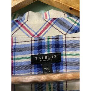 Talbots Plus Petite Women's Blue and Pink Plaid Shirt with Silver Lining Size 2x