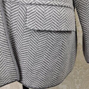 Talbots Plus Petites Size 2XP Two Tone Gray Jacket Merino Wool Chevron Stripes
