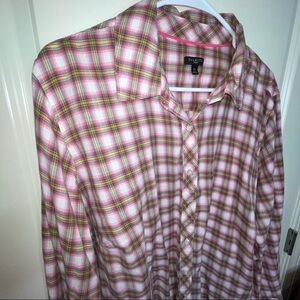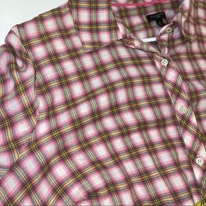 Talbots Plus Pink Plaid Cotton Button Down Blouse 2X