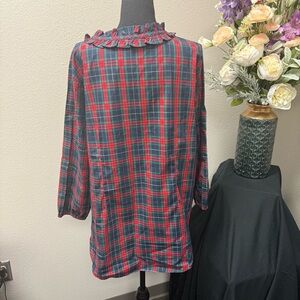 Talbots Plus Red Green Plaid Ruffle Neck Blouse XL Holiday Fall Winter Top