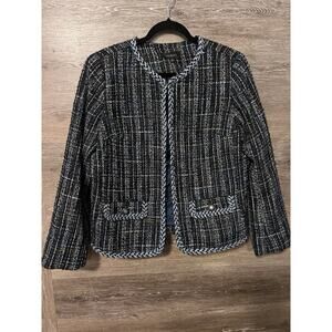 Talbots Plus Size 16 Blue Houndstooth Blazer Coat Suit Business Casual Career