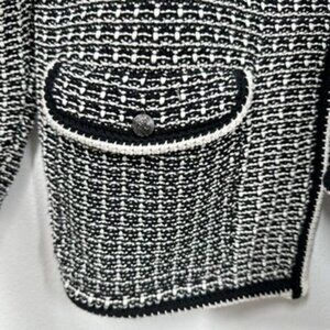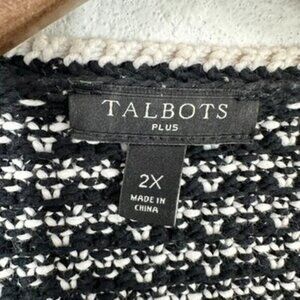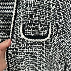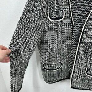 Talbots Plus Size 2X Black White Tweed Knit Longline Open Front Lady Jacket