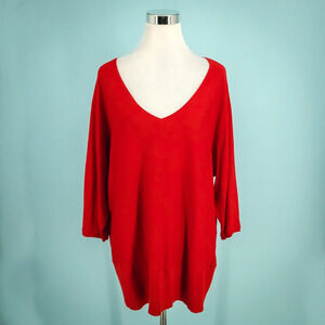Talbots Plus Size 2X Red V Neck 3/4 Dolman Sleeve Cotton Rayon Blend Knit Pullover Sweater NEW
