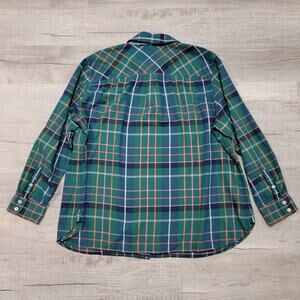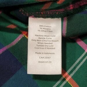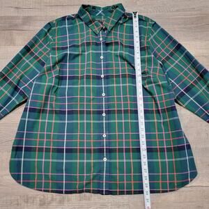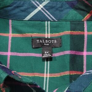 Talbots Plus Size 3X Flannel Button Up Shirt Plaid Green Shimmer Holiday Top