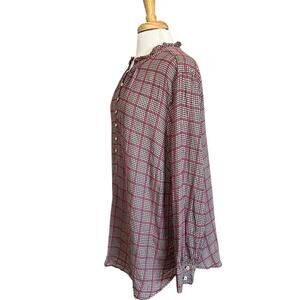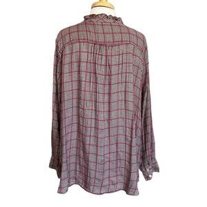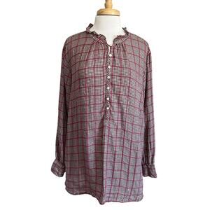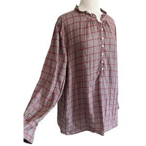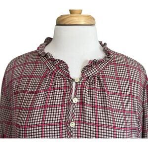 Talbots Plus Size 3X Ruffle Country Cottage Top Blouse Purple Pink Plaid Cotton