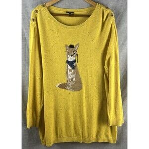 Talbots Plus Size 3X Sweater Mustard Yellow Gentleman Fox Novelty Fall Graphic