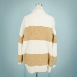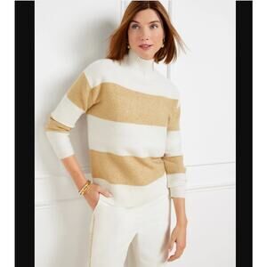 Talbots Plus Size 3X White Tan Sequin Stripe Mock Turtleneck Wool Blend Sweater