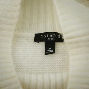 Talbots Plus Size 3X White Tan Sequin Strippe Mock Neck Turtleneck Long Sleeve Wool Blend Knit Pullover Sweater