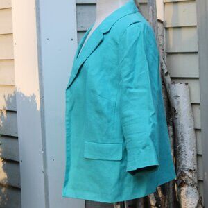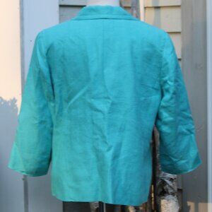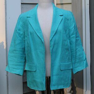 Talbots Plus Size Petite Aqua Linen Classic Open Blazer Jacket