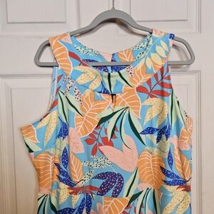 Talbots Plus Size Petite Jersey Knit Vacation Resortwear Maxi Dress Leaf Print