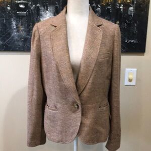 Talbots Plus Size Wool Blend Tan Tweed One Button 3 Pocket Blazer Jacket-16