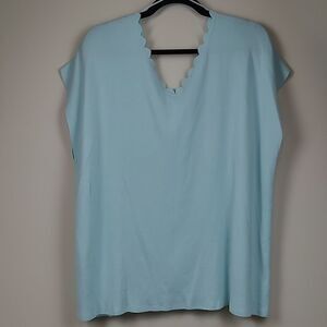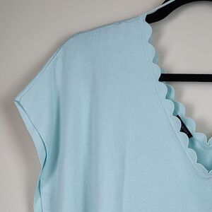 NWT Talbot's Plus Size Scalloped Double V-neck Cap Sleeve Lightweight Fine Knit Sweater in light turquoise. Flattering cap sleeves with a feminine scallop along the neckline. This top looks great under a jacket or lovely all by itself. Super soft 60% cotton and 40% rayon in a size 3X.