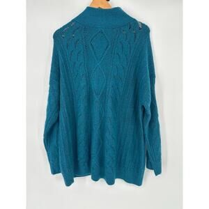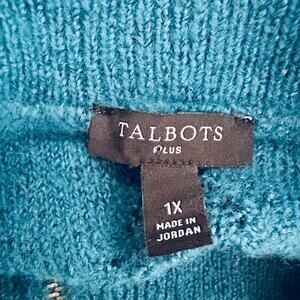 Talbots Plus Sweater 1/4-Zip Pullover Womens Size 1X Teal Blue Cable Knit Tunic
