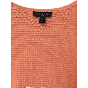 Talbots Plus Sz 2X Open Front Modern Ottoman Ribbed Cardigan Peach Coral