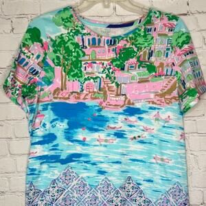 Talbots Plus Sz X Seaside Summer Vacation Scene Cotton Stretch Knit Pullover Top