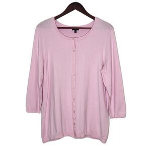 Talbots Plus Three Quarter Sleeve Button Up Light Pink Sweater Cardigan