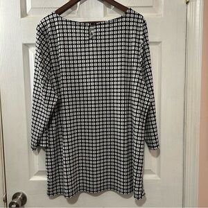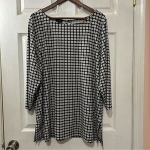 Talbots Plus Woman's Top Shirt Blouse 3/4 Sleeves Split Hem Black White Sz 2X