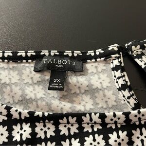Talbots Plus Woman's Top Shirt Blouse 3/4 Sleeves Split Hem Black White Sz 2X