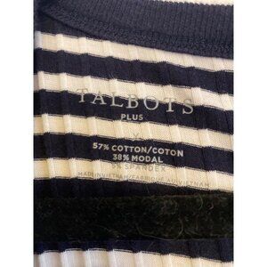 Talbots Plus Women's Navy & White Striped Ribbed Long Sleeve Stretch Top Size 1X